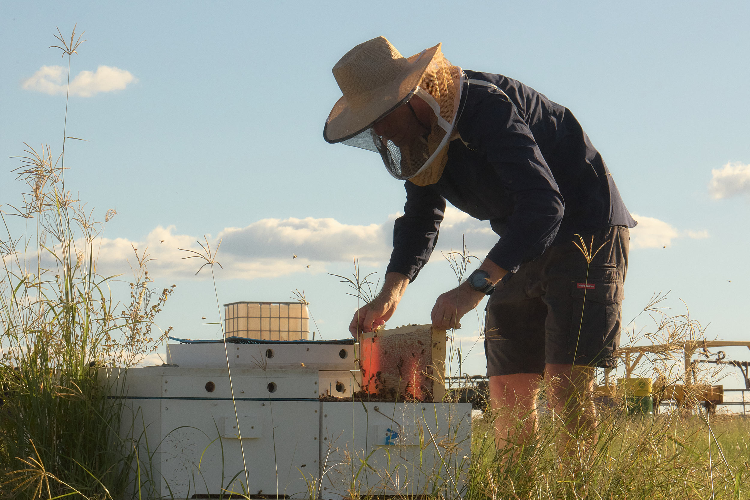 Set against the backdrop of the Burnett Mary region, where agricultural runoff threatens the nearby reef, this story became about more than nuts and yields. Through our lens, we witnessed the deliberate choices that transform a greenfield development into something alive - a breathing ecosystem where European bees share space with native species, where water moves slowly through multi-species pastures, where carbon is pulled from air and locked into earth.